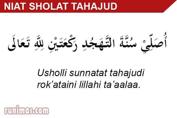 Adapun bacaan latin niat sholat tahajud yaitu ushollii sunnata ttahajjudi rok'atayni lillaahi ta'aalaa.