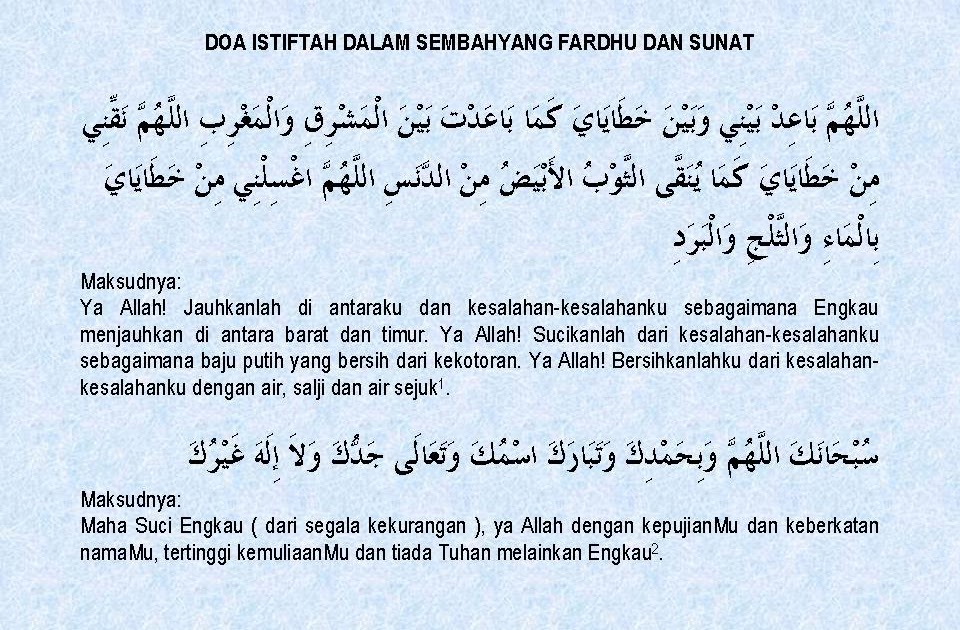 Doa iftitah di dalam solat 2018 4. Bacaan ini dibaca dengan pelan baik oleh imam dan makmum dalam sholat berjamaah atau sholat sendirian. Dalam melakukan takbir akan diselingi dengan beberapa bacaan doa. Jika ditinggalkan, tidak berpengaruh pada sah tidaknya sholat.