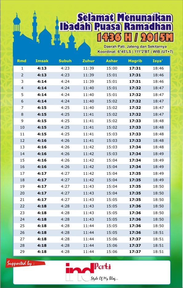 PNG. Kabupaten ini berbatasan dengan laut jawa di utara, kabupaten rembang di timur, kabupaten blora. Informasi jadwal imsakiyah wilayah pati jawa tengah jadwal waktu imsak, sahur, buka puasa 1441 h / 2020 m sesuai dengan jadwal yang informasi ini terakhir diperbaharui pada :