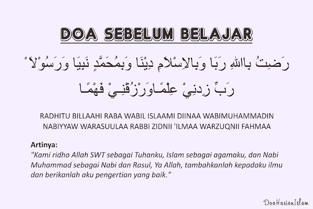 Penjelasan lengkap seputar doa sebelum dan sesudah belajar (arab, latin, artinya). Adapun di dalam islam, belajar dan menuntut ilmu mempunyai keutamaan yang luar biasa. Agar ilmu yang diperoleh dipermudah, manfaat, berkah dan.