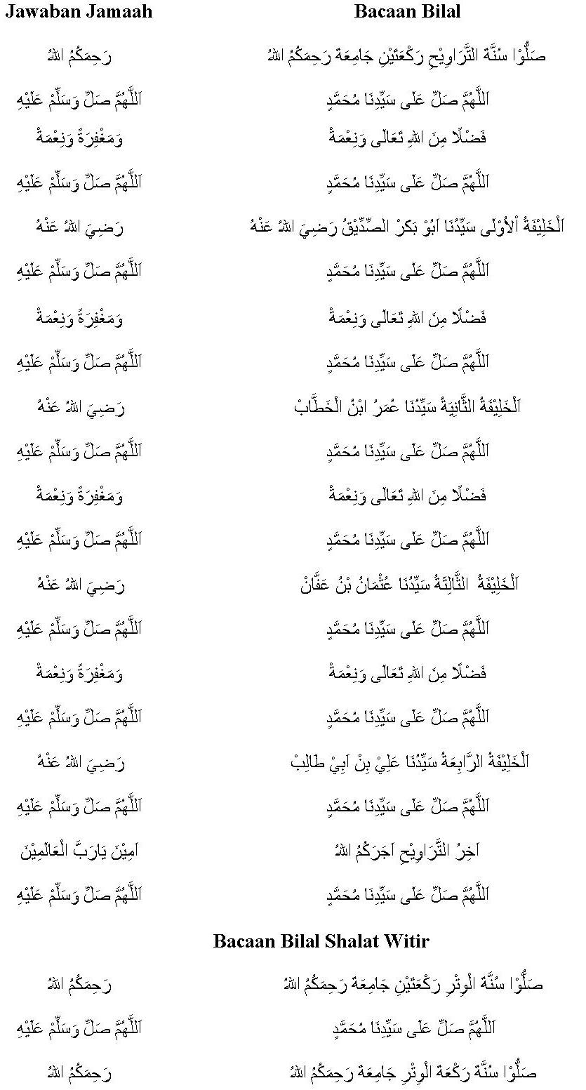 Bacaan bilal shalat tarawih dan witir. Bacaan bilal tarawih x do'a sholat tarawih. Sesungguhnya kami memohon kepadamu, kesejahteraan dalam agama, dunia dan akhirat, keafiatan jasad, kesehatan badan, tambahan ilmu, keberkahan rezeki, taubat sebelum datang maut. Shalat witir adalah shalat sunnah penutup, adapun berikut ini urutan dzikir dan doa setelah sholat witir yang biasa di baca pada bulan ramadhan.