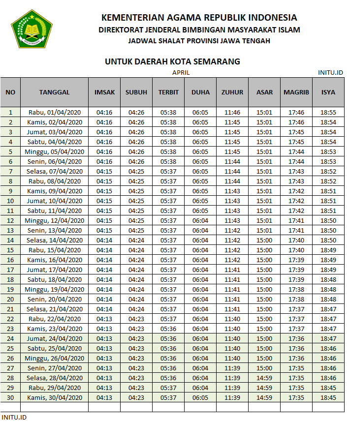 Berikut ini jadwal imsakiyah puasa ramadhan 1441 h / 2020 m untuk wilayah kota semarang jawa tengah dan sekitarnya dari bimas islam.