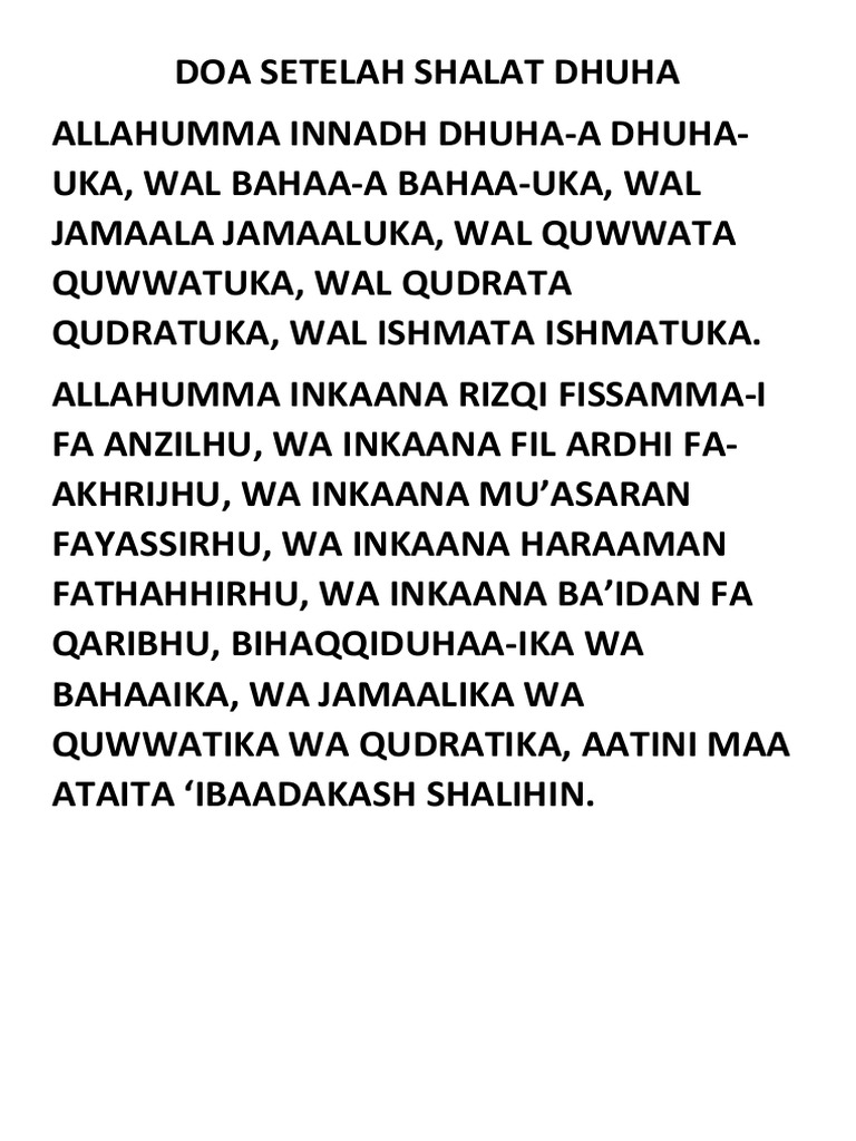 Images. Savesave doa sholat dhuha.pdf for later. Selain nantinya saya akan menunjukkan doa sholat dhuha secara lengkap, saya di sini juga akan menjelaskan secara tuntas segala hal yang berkaitan tentang sholat.