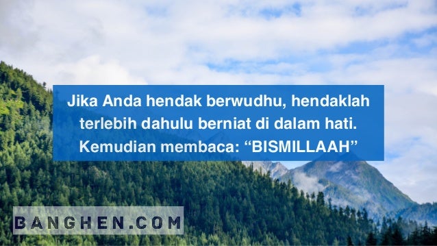 Background. Ketiga versi doa ini memiliki landasan dalil yang kuat dan sahih sehingga tidak perlu diragukan lagi nilainya. Mengucapkan 'bismillah' karena nabi shallallahu 'alaihi wa sallam bersabda tidak ada wudhu bagi yang tidak menyebut nama allah.