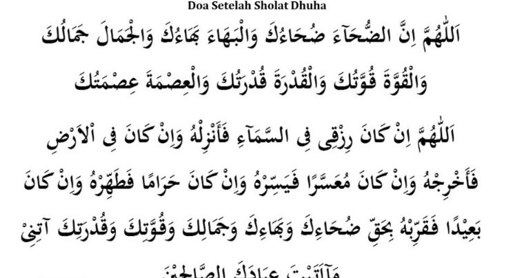 Pictures. Sholat dhuha adalah sholat yang dikerjakan setelah terbitnya matahari. Setelah melakukan sholat dhuha dianjurkan untuk membaca doa sholat dhuha yang secara lengkap beserta artinya dijelaskan dalam artikel ini.