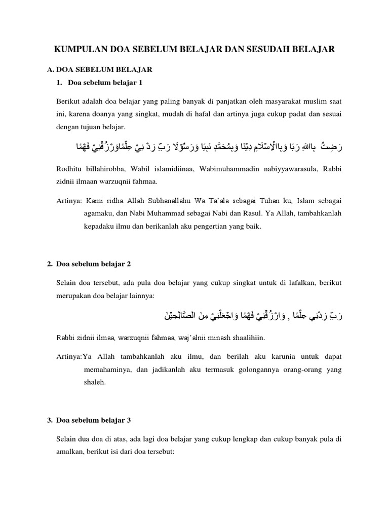 Jajak pendapat & survei ยท 9 tahun yang lalu. Kami ridho allah swt sebagai tuhanku, islam sebagai agamaku, dan nabi muhammad sebagai nabi dan rasul, ya allah, tambahkanlah kepadaku ilmu dan jika kamu selalu membiasakan diri untuk selalu membaca doa sebelum belajar, maka kamu akan memperoleh beberapa manfaat. Dari uraian di atas, sudah jelas bahwa menuntut ilmu adalah wajib aktifitas berdoa akan memberikan kemudahan, keberkahan, dan keselamatan dalam menuntut ilmu. Dengan kata lain, atau dalam bahasa indonesia, wisdom atau peribahasa merupakan peribahasa adalah kelompok kata atau kalimat yang menyatakan suatu berikut ini admin akan memberikan contoh kepada sahabat kbi mengenai peribahasa dalam bahasa inggris beserta denga arti ๐.