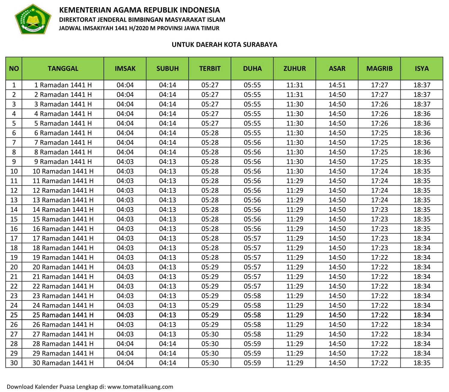 Good Jadwal Imsakiyah Ramadhan 2020 Surabaya