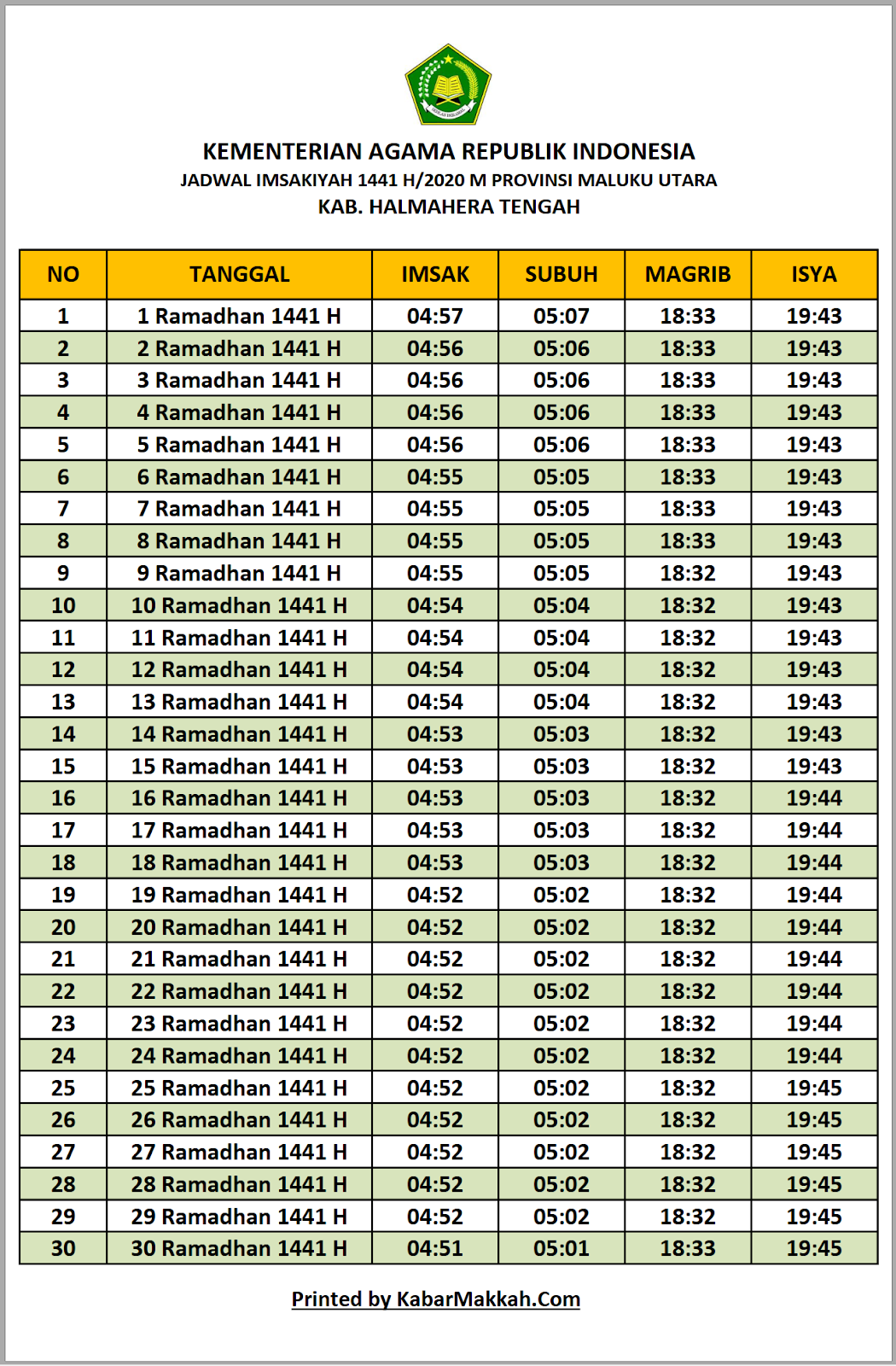 Jadwal Imsakiyah Kabupaten Maluku Tengah 2020 Puasa ... from www.nyonyor.com